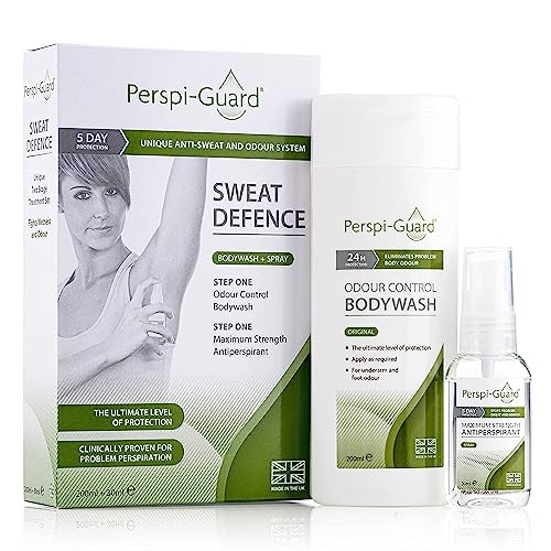 Perspi-Guard Sweat Defence Odour Control Body Wash & Maximum Strength Antiperspirant – Antibacterial Shower Gel & Anti Perspirant Deodorant for Men & Women for Excessive Sweating – 200ml & 30ml