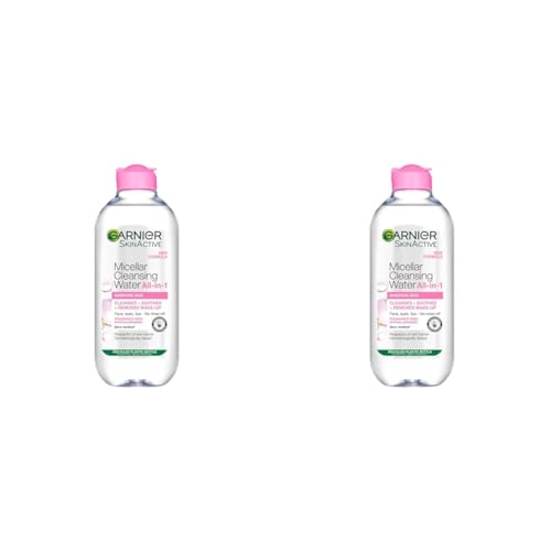 Garnier Micellar Cleansing Water, Gentle face Cleanser & Makeup Remover, Fragrance-Free, Vegan Formula, Suitable For All Skin Types, Even Sensitive, Skin Active, 400ml (Pack of 2)
