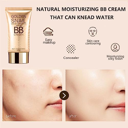 BB Cream Light – BB Cream Snail Extracts – BB Cream Foundation Cover Blemishes Hydrating Even Skin Color 50ml Repairing for Daily Use (Natural)
