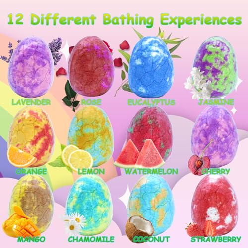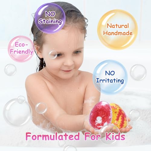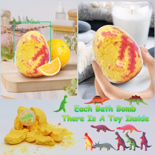 12 Pack Bath Bombs for Kids with Surprise Toys Inside,Organic Dinosaur Bath Bombs Gift Set,Fun Educational Toys Dino Fizzy Balls w/Rich Bubbles, Kids Bubble Bath Dino Egg for Kids 3 4 5 6 7 8 9 Year