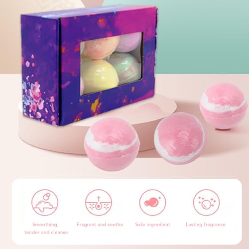6pcs Vanilla Scented Bath Salt Balls Set for Kids, Colorful Bubbles, Safe Ingredients, Easy Cleansing, Great Gift Set, for Boys and Girls