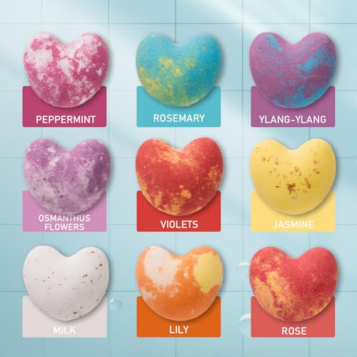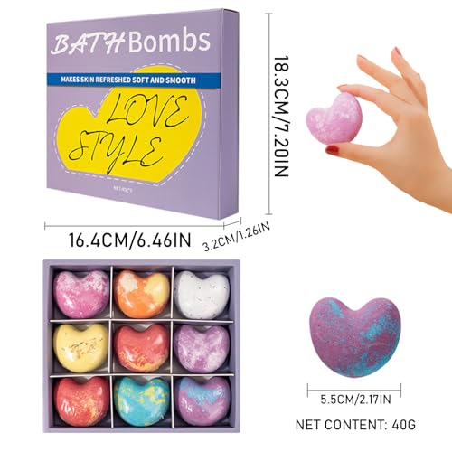 Bath Bomb Set 9 Pcs Heart Shaped Bath Bombs with Essential Oil Bath Bomb Kit, Bath Bombs for Women Gifts, Creative Natural Bath Bombs Exquisite Bubble Bath for Women Girls Skin Moisturize