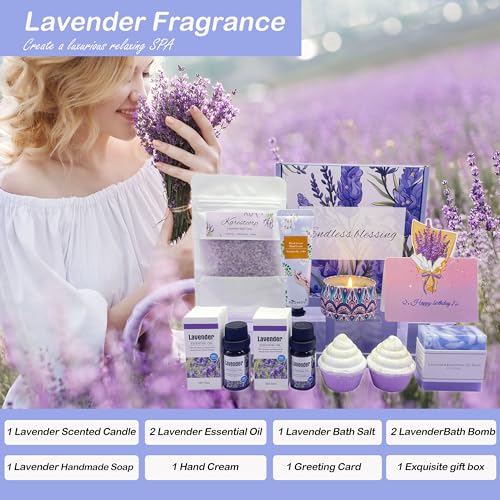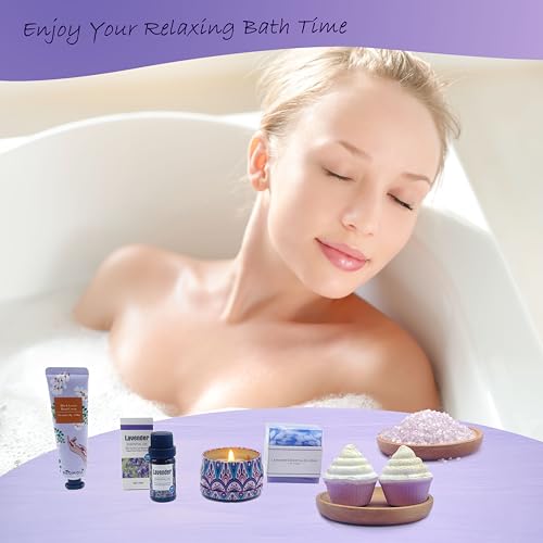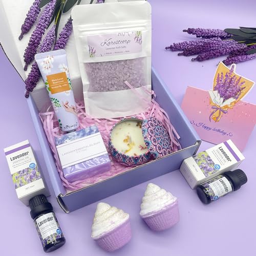 Bath Set Birthday Gifts for Women, Lavender Pamper Hampers for Her, Self Care Skin Care Gifts Box for Mum Best Friend Sister Wife Girlfriend, Ladies Relaxation SPA Bath Bombs Gift Set