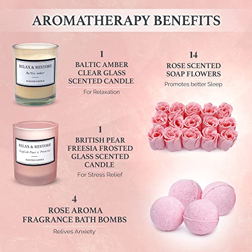 Empire Scented Candles & Bath Bombs Set, Gifts for Women, Birthday Gifts for Her, 20pcs Set Gifts for Her, Birthday gift for Women with Rose Scented Soap Flowers