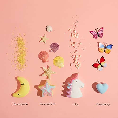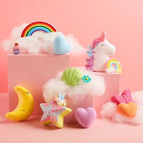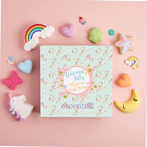Escential Unicorn Bath Bombs, 9 Organic Vegan Bath Fizzers, Moisturising Essential Oils & Natural Scents, Birthday Gift Set for Her, Women, Girls, Kids