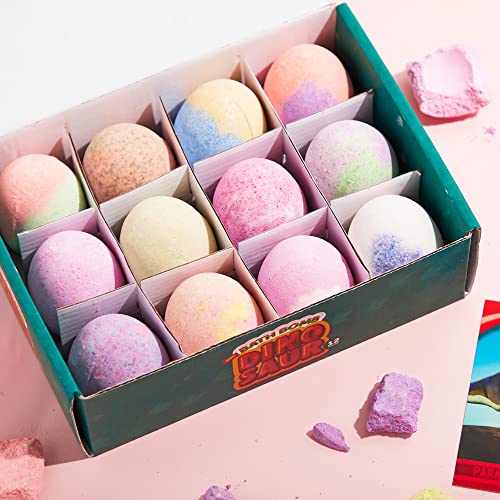 JOYIN 12 Pack Bath Bombs for Kids with Dinosaur Toys, Bubble Bath Bombs with Surprise Toy Inside, Natural Essential Oil SPA Bath Fizzies Set, Kids Safe Birthday Gift Set for Boys and Girls