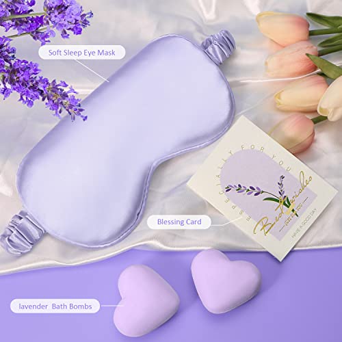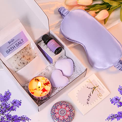 Lavender Pamper Gifts for Women,Birthday Pamper Hamper Mum Self Care Gift Set Relaxation Bath Gift Care Package for Her,Relax Spa Gift with Essential Oil,Bath Bomb,Bath Salt,Candle,Sleep Mask,Card