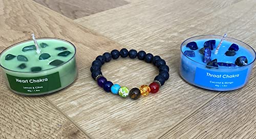 Serenity Crystals Chakra Candle Set – Beautifully Crafted Crystal Infused Candles for Meditation, Healing and Wellness a Suitable Gift for Chakra Spiritual Yoga Meditation, Includes Bracelet
