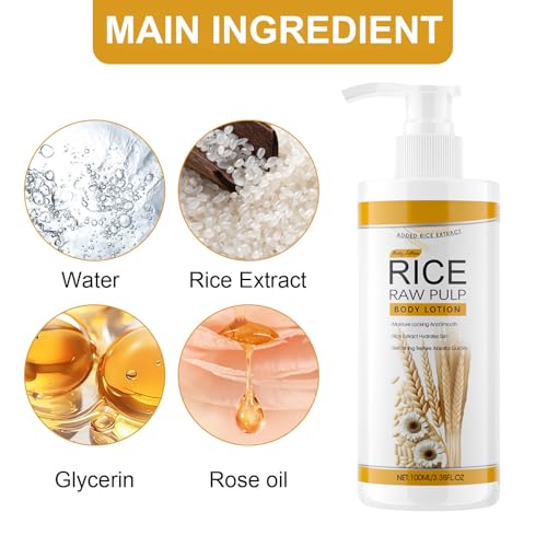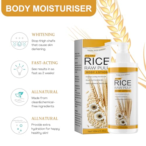 Body Lotion, Rice Raw Pulp Body Moisturiser, Body Cream with Rice Extract, Body Dry Skin Moisturiser, Brightening Body Creams for Women, Firming Body Lotion, Hydrates Skin, Absorbs Quickly