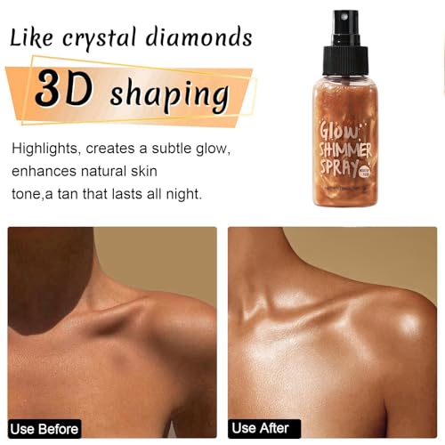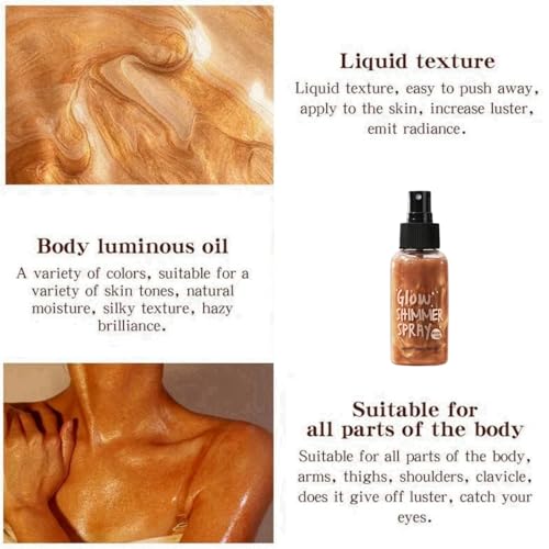 Body Shimmer Oil,Shimmer Body Glow Spray,Body Luminizer Liquid Highligher,Body Oil Shimmer Spray,Bronzing Drops for Face and Body,Body Highlighter Liquid Bronzer,Non-Sticky Glitter Body Lotion
