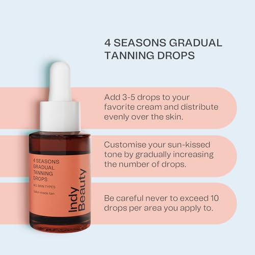 Tanning Drops, 30ml – Fake Tan Bronzing Drops for Face & Body – Add Self Tanning Drops to Skin Care – 100% Vegan & Fragrance-Free – All Skin Types – Natural & Gradual Tan Moisturiser – Indy Beauty