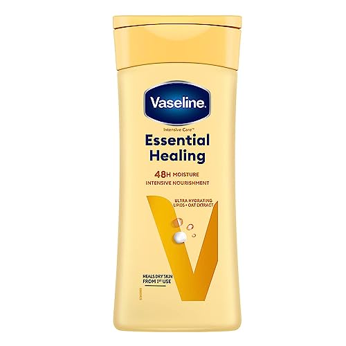 Pamper your skin with Vaseline Intensive Care Essential Moisturiser Daily Body Lotion for Softer, Smoother Skin in a 400ml bottle. Specifically formulated to provide intense hydration, this fast-absorbing lotion deeply nourishes and repairs dry, rough patches. Infused with micro-droplets of Vaseline Jelly, it works to restore and strengthen your skin’s natural moisture barrier, ensuring lasting softness and smoothness. Suitable for all skin types, this daily body lotion is perfect for keeping your skin healthy and radiant throughout the day. Experience the luxury of deeply moisturised skin.