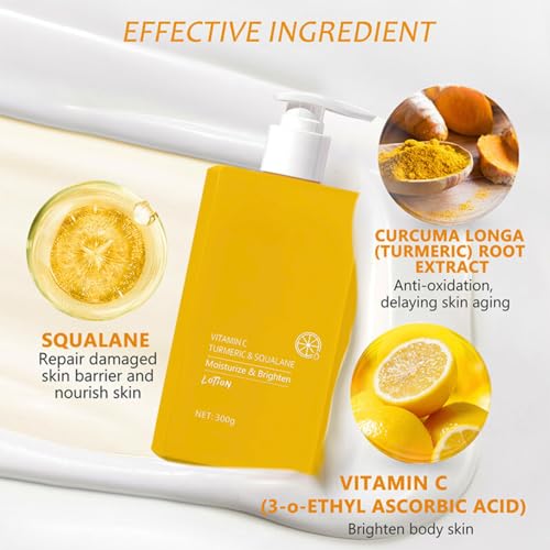 Vitamin C & Turmeric Body Lotion, Large-capacity Body Moisturiser With Vitamin C, Turmeric And Squalane, Remove Dark Spots, Moisturizing Body Lotion for Dry Skin, Body Skin Care Smooth Skin, 300g