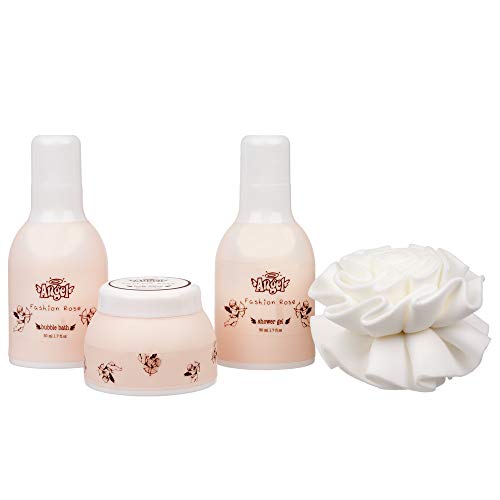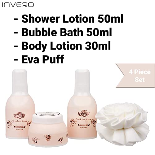 4 Piece Elegant Ladies Fashion Rose Body & Bath Box Gift Set – Includes Shower Gel, Bubble Bath, Body Lotion and an Eva Puff