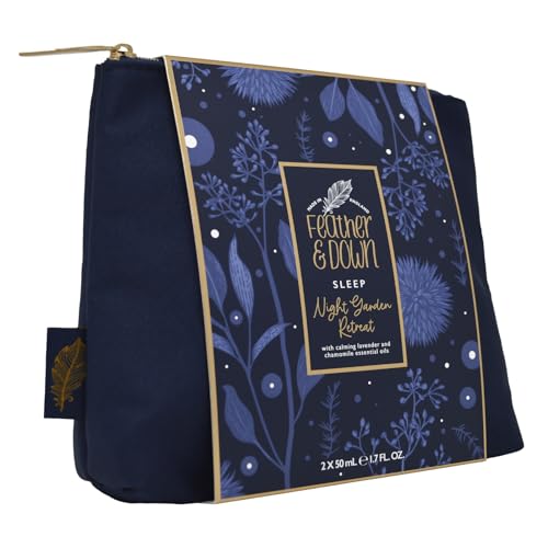 Transform your bedtime routine with the Feather and Down Night Garden Retreat Gift Set. This luxurious set includes a Lavender and Chamomile Bubble Bath, a calming Pillow Spray, a soothing Eye Mask, and a stylish Luxury Travel Pouch. Ideal for relaxation and stress relief, this vegan-friendly set is perfect for pampering yourself or giving as a thoughtful gift.