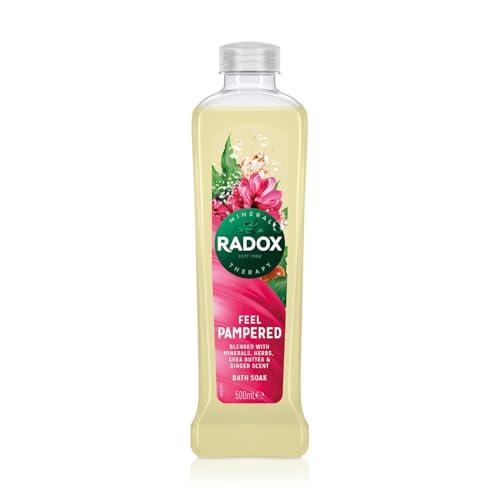 Radox Feel Pampered Bath Soak Blended with Minerals, Herbs with Scents of Shea Butter and Ginger to Feel Pampered and Relaxed, 500 ml Bulk Buy (12)