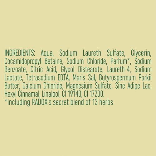 Radox Feel Pampered Bath Soak Blended with Minerals, Herbs with Scents of Shea Butter and Ginger to Feel Pampered and Relaxed, 500 ml Bulk Buy (12) is a luxurious bath soak designed to make you feel truly pampered and relaxed. With its unique blend of minerals and herbs, combined with the soothing scents of shea butter and ginger, this bath soak transforms your bath into a rejuvenating spa experience. Each bulk buy pack includes twelve 500 ml bottles, ensuring you always have plenty on hand for a relaxing escape.