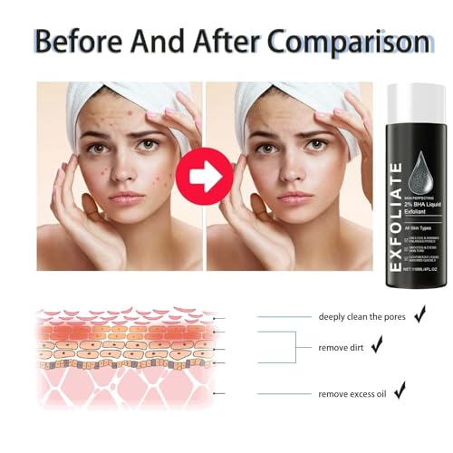Optimised for unparalleled skin care, this 118 ml 2% BHA Liquid Exfoliant combines the benefits of a Face Exfoliating Peel, a Face Exfoliator Clarifying Serum, and an Anti Wrinkle Face Cream. With the potency of BHA, it penetrates deep into pores to unclog impurities, revealing smooth, refreshed skin. The hydrating properties of the included Face Serum enhance moisture retention while reviving dull complexions. Specially formulated for women, it serves as a powerful Anti Wrinkle Serum addressing signs of aging, fine lines, and spots. Additionally, it functions as an effective Spot Treatment, targeting blemishes and promoting an even skin tone. Elevate your skincare regimen with this comprehensive, high-performance product.