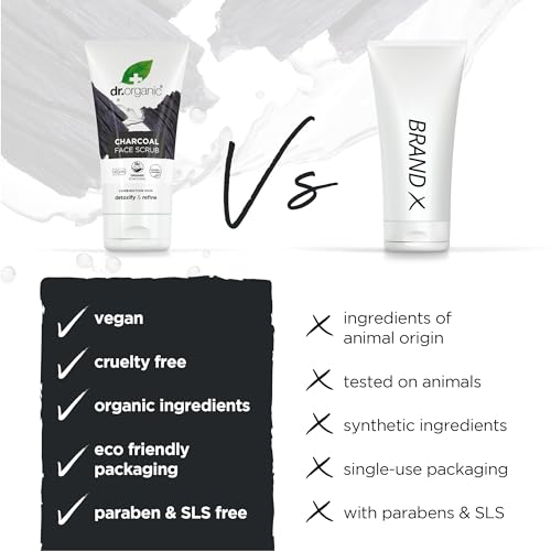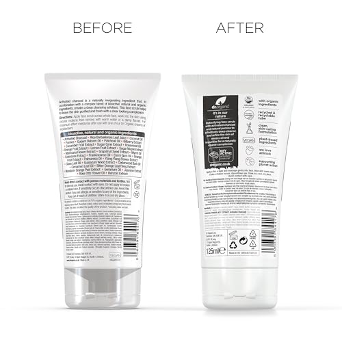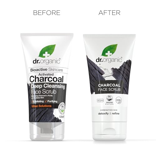 Dr Organic Charcoal Face Scrub, Cleansing, For Acne & Clearing Skin, Oily, Problem Skin, Natural, Vegan, Cruelty-Free, Paraben & SLS-Free, Recycled & Recyclable, Organic, 125ml, Packaging may vary