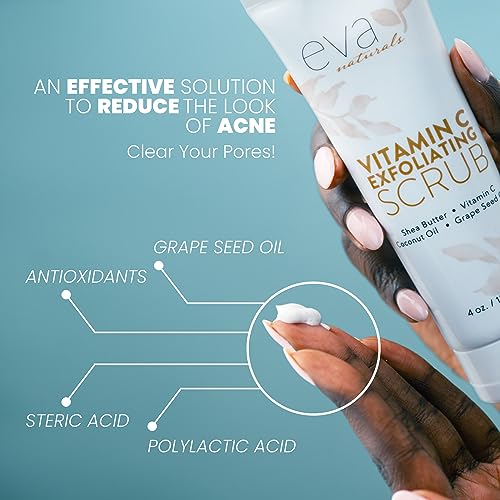 Eva Naturals Vitamin C Exfoliating Scrub – Cleanse and Clear Face – Face Scrub, Face Cleaner, Facial Scrub, Face Exfoliating Scrub, Facial Exfoliating Scrub, Facial Wash, Face Exfoliator