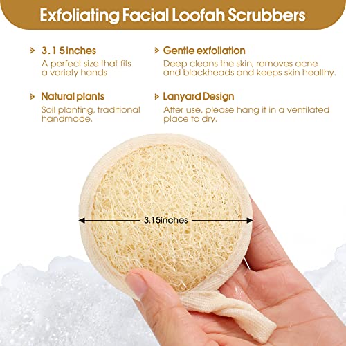 Exfoliating Loofah Sponge Pads Face loofa Brush 6 Pack 3.15 inches Made of 100% Natural Luffa body and Facial Scrub Pad Personal Care Close Skin for Men and Women for Bath Spa and Shower