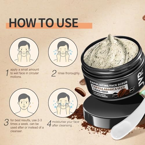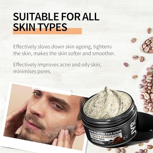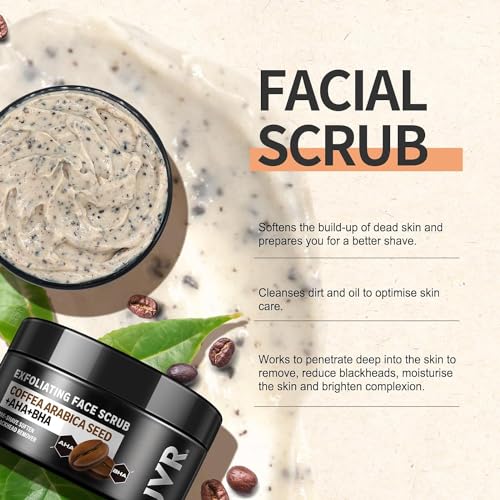 Face Scrub, JVR Coffee Facial Scrub for Men, Facial Peeling Cream, Body Scrub Exfoliator, Reduces Skin Impurities, Blackheads, Pore Deep Cleansing, Improve Dark Spot Acne, 120ml