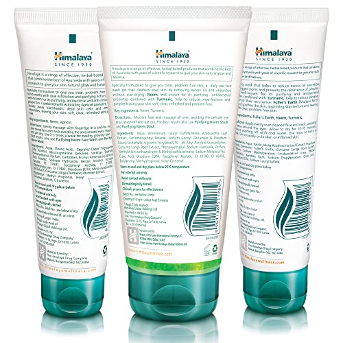 Himalaya Herbals Purifying Neem Face Wash SET with Face Scrub & Face Mask | Natural Moisturising Facial Cleanser with Goodness of Neem and Turmeric, Deeply Cleans Pores and Pimples (SET)