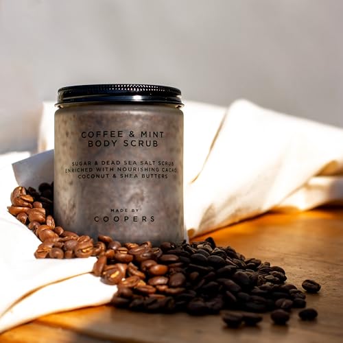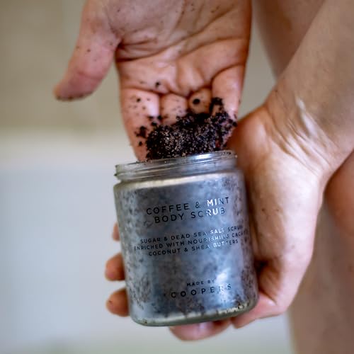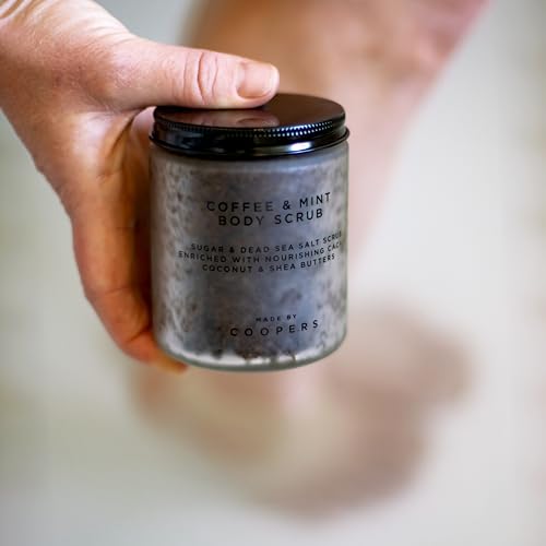 Made By Coopers Coffee Mint Sugar and Dead Sea Salt Body Scrub – Invigorating Exfoliation with Natural Ingredients for Radiant Skin – Energizing Coffee and Mint Infusion – 250g Full Body Treatment