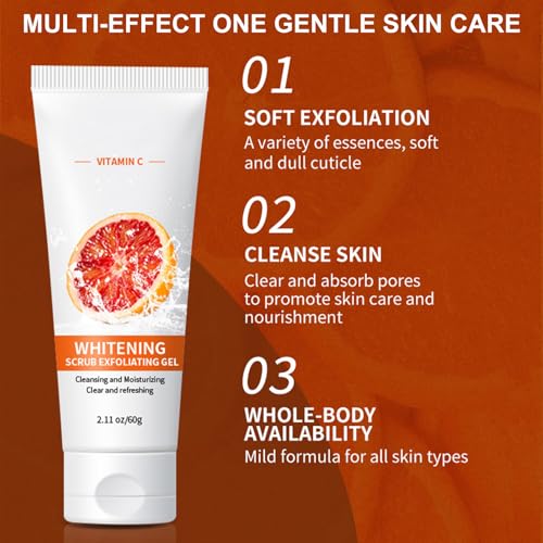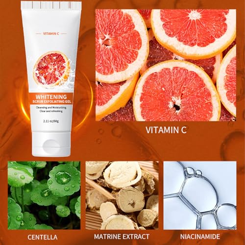 Unlock radiant, refreshed skin with our Orange Exfoliating Whitening Gel. Enriched with Vitamin C, this deep-cleansing exfoliator scrub effortlessly removes dead skin cells, unveiling a brighter complexion. Suitable for both men and women, this versatile gel ensures superior exfoliation for face and body.