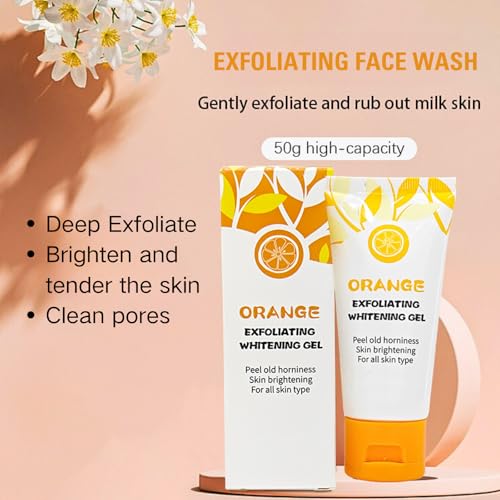 Orange Face Exfoliator, Vitamin C Face Scrub, Mild Exfoliating Face Wash, Orange Exfoliating Gel For Brightening Skin, Exfoliating Scrub Remove Dead Skin For Smooth & Radiant – Face & Body &Knee