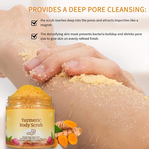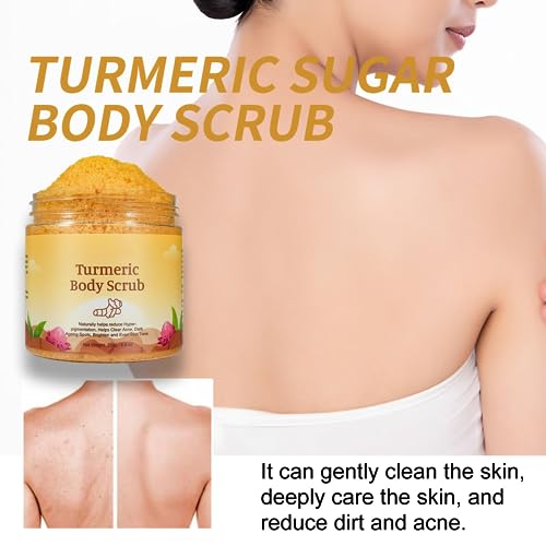 Turmeric Body Scrub – Remove Acne Dark Spots – Turmeric Exfoliating Body Scrub – Smooth Skin Deep Cleansing Moisturizing Hyperpigmentation – Great Gifts Women Body Scrub for Deep Cleansing (Turmeric)