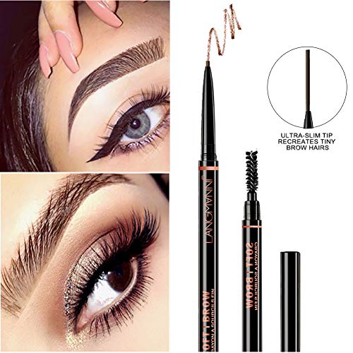1. Eyebrow Pencil,Greyghost Dark Brown Waterproof Brow Pen Double End Long Lasting Micro Brow Pencil with Comb Brush Automatic Retractable Eyebrow Pen Makeup Cosmetic Tool (Dark Brown)