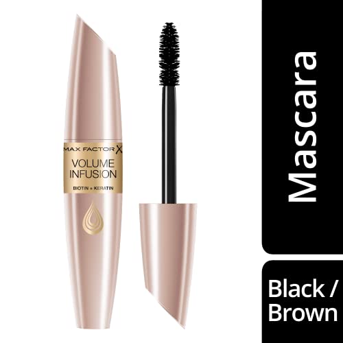 Discover the transformative power of Max Factor Volume Infusion Mascara in Black/Brown. Specially formulated to provide instant volume and length, this mascara goes beyond mere cosmetics. Infused with keratin and biotin, it nourishes and fortifies your lashes, making them visibly healthier over time. Whether you prefer a natural look or dramatic flair, its gentle, clump-free formula ensures smooth application. Also available in waterproof and intense black variants, Max Factor Volume Infusion Mascara meets all your lash needs. Elevate your beauty routine with this dual-action product that combines stunning results with lash care.
