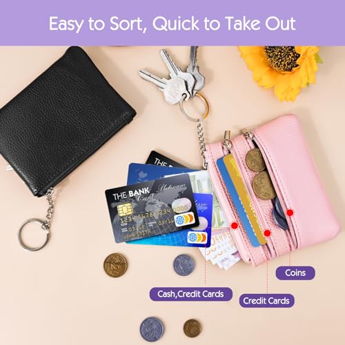 Furuising 2Pcs Coin Purse for Women, PU Leather Small Ladies Purse, Short Wallet for Women with 3 Compartments & Keychain, Credit Card Holder Wallet for Women Men