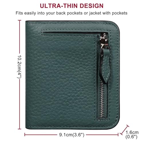 GADIEMKENSD Women Bi-fold Purse RFID Blocking Credit Card Holder Leather Travel Wallet for Woman Zipper Small Coin Pocket Cute Compact Ladies Purse with ID Window Card Cash Slots Ultra Slim Dark Green