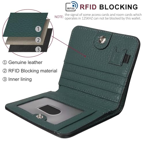 Shop the stylish GADIEMKENSD Women Bi-fold Purse, featuring RFID blocking, ID window, ultra-slim design, and ample storage in dark green. Perfect for travel and everyday use.