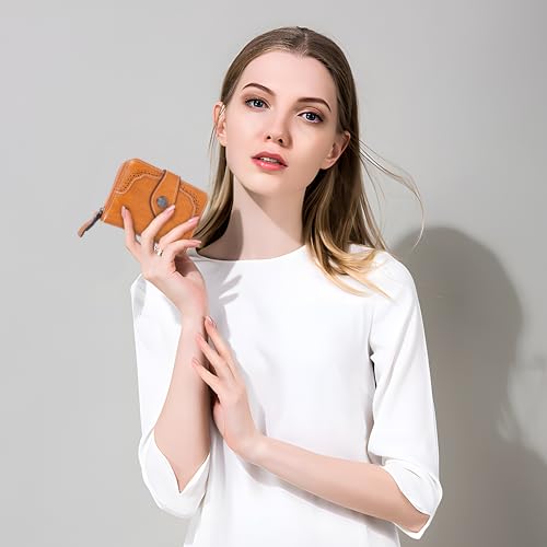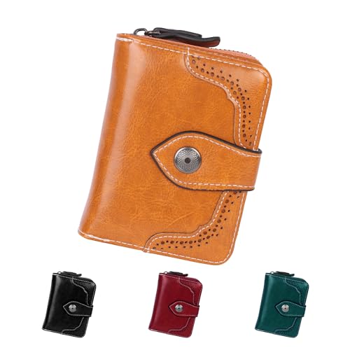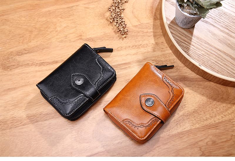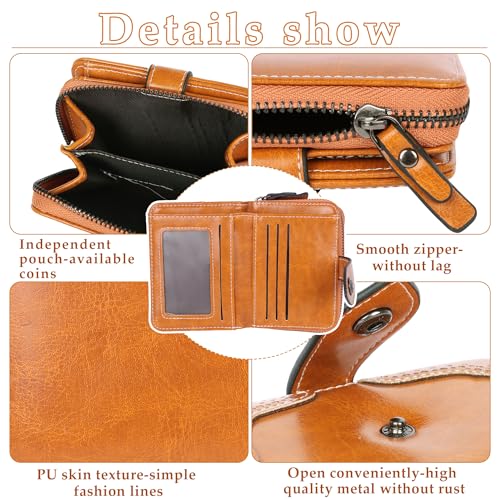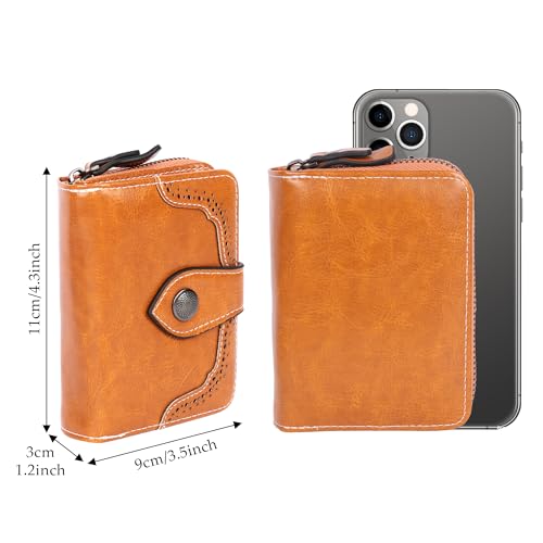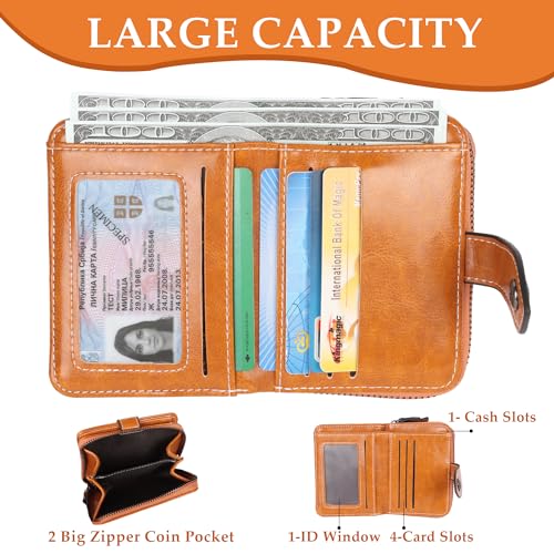 Jiusely Small Leather Purses Credit Card Holder RFID Protection Blocking Small Compact Wallets for Women with Multiple Card Slots, Zipper Large Compartment and ID Window