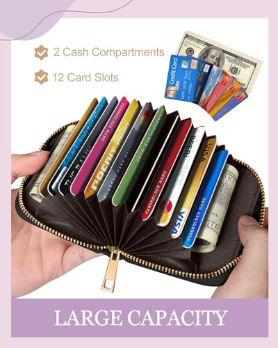 AOXONEL Women’s RFID Small Bifold Leather Wallet Ladies Mini Zipper Coin Purse id Card Pocket,Slim Compact Thin