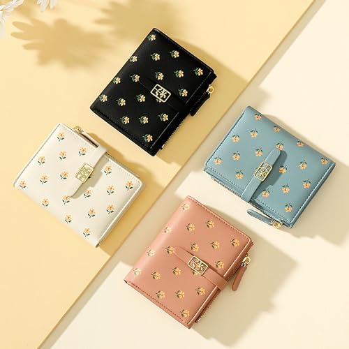 LZSXDWXY Women’s Wallet, Fashion Cute Daisy Flowers Print Wallets with Exterior Zipper Around Coin Purse Bifold Bill Wallet with Credit Card Holder Id Window