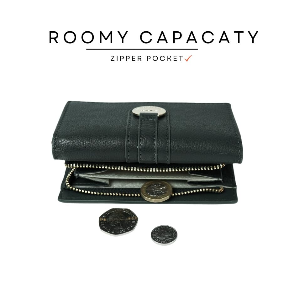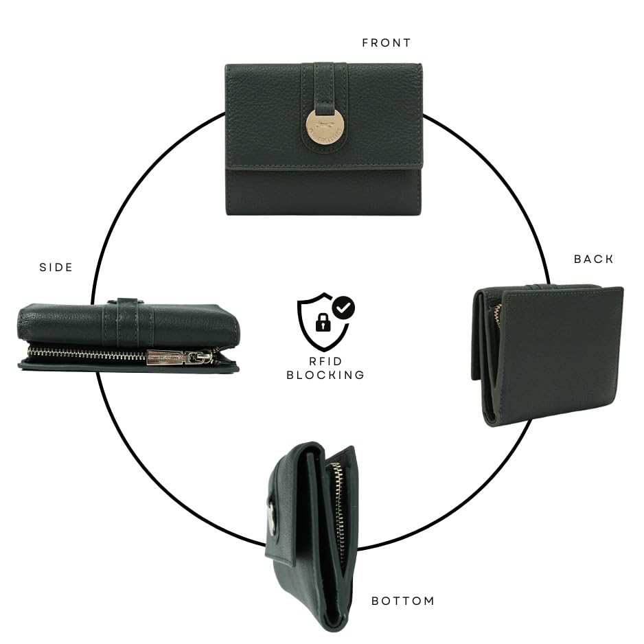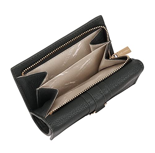 PAUL COSTELLOE Genuine Leather Women’s Purse with Flap & gold finish logo embossed hardware disc, Designer RFID-Blocking Bifold Wallet with Zip Coin Pocket – Stylish Designer Purse – LAWA