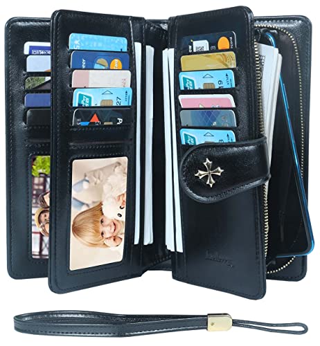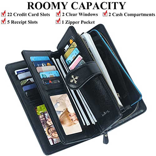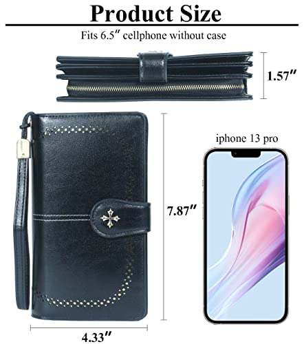 SHIFANQI PU Leather Wallets for Women, Ladies Purse with Card Slots Long Clutch Wallet with Wristlet Large Zipper Holder (1640-Black)