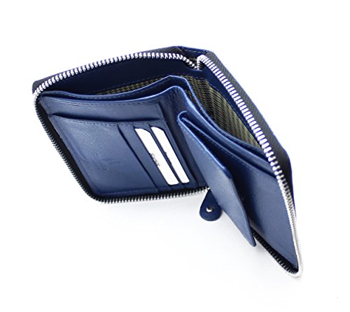 STARHIDE Women RFID Safe Protector Zip Around Genuine Leather Wallet with Coin Pocket Gift Box 5550 (Blue)