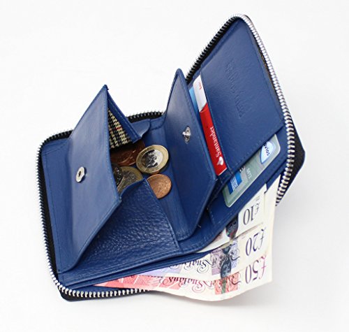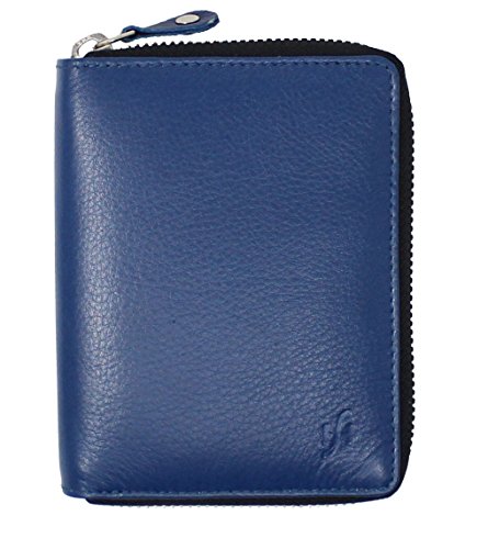 Crafted from genuine leather, the STARHIDE Women RFID Safe Protector Zip Around Genuine Leather Wallet with Coin Pocket Gift Box 5550 in Blue combines elegance and functionality. This premium wallet features RFID protection, ensuring your cards and personal information are safe from digital theft. The zip-around design and spacious compartments, including a dedicated coin pocket, provide ample space for your cash, cards, and coins. This wallet is an ideal gift wrapped in an elegant gift box.