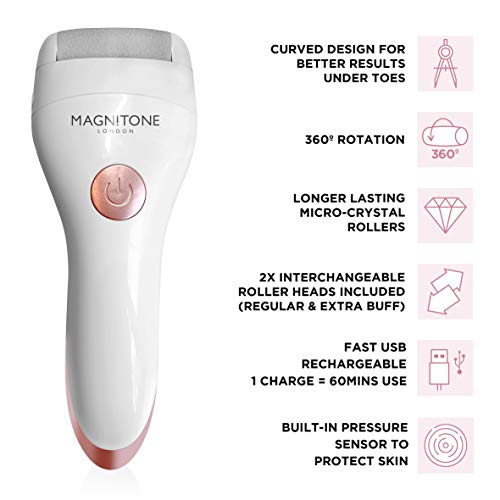 Magnitone Well Heeled 2 Rechargeable Express Pedi – White is the ideal solution for maintaining smooth and beautiful feet. This powerful device uses advanced micro-crystal roller technology to efficiently exfoliate and smooth your feet. It comes with two speed settings, allowing you to tailor your treatment to your specific needs. The ergonomic design ensures comfortable handling, and the rechargeable battery provides the convenience of cord-free use. With replaceable roller heads, the Well Heeled 2 ensures long-lasting performance. This essential foot care device is suitable for all skin types and helps you achieve professional results from the comfort of your home. Perfect for tackling hard skin or simply keeping your feet soft and beautiful, it delivers consistently impressive results.