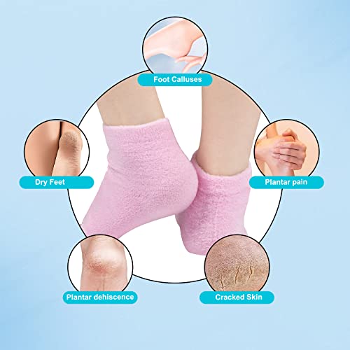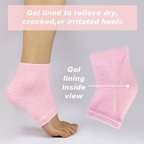 Moisturizing Heel Socks 2 Pairs Gel Lined Fuzzy Toeless Spa Socks ,Skin Softening Footcare Treatment Socks for Cracked Heels, Dry feet, Foot calluses Sock (SFDFN002)