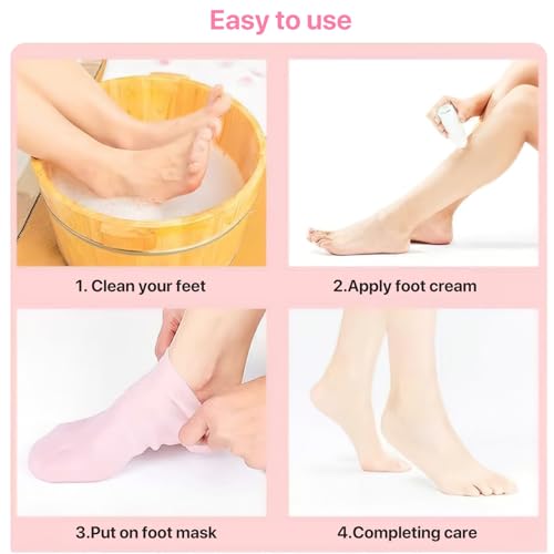 Experience ultimate foot and hand care with QIUWORE’s 4 PCS Silicone Socks for Women and Gloves. These silicone moisturising socks are perfect for repairing cracked heels and rejuvenating dry feet. The gloves provide the same intensive care for dry, chapped hands. Feel the spa-like treatment at home, ensuring your skin stays soft and healthy.