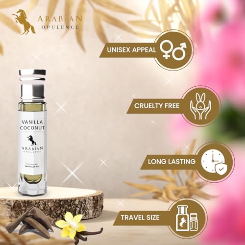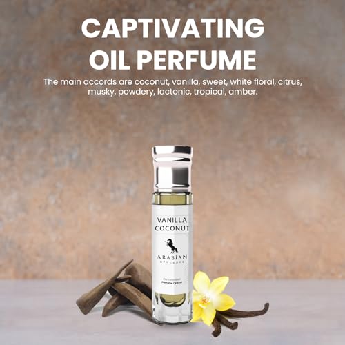 Immerse yourself in the luxurious scent of Arabian Opulence FR291 VANILLA COCONUT Concentrated Perfume Oil. This alcohol-free roll-on offers a unisex fragrance highlighting a sweet and creamy blend of vanilla and coconut that lingers all day. Available in 6ml and other variants for your convenience.