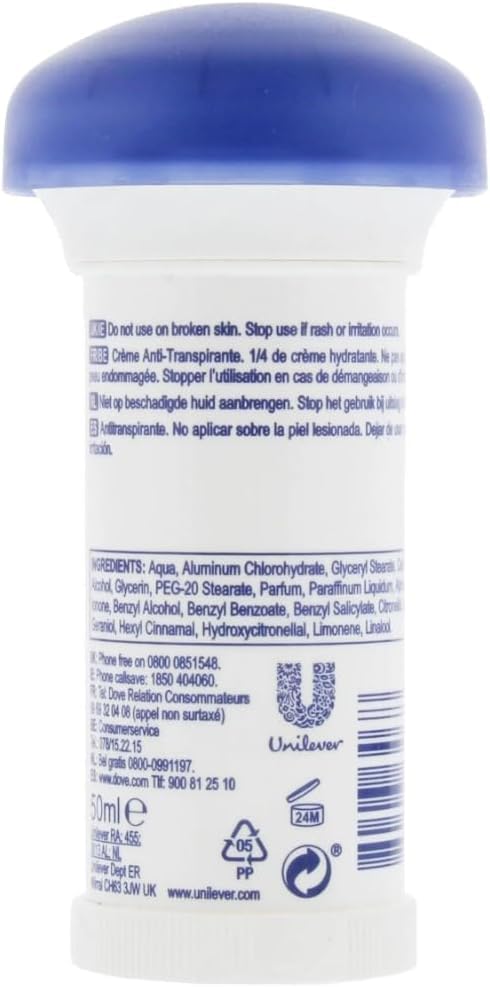 Dove Deodorant Stick Moisturising Cream Mushroom – Original – 50 ml (Pack of 6) Anti Perspirant 48 Hours Protection