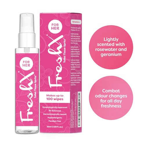 FreshX for HER Toilet Paper Spray | Gynecologically Approved | Feminine pH Balanced Wet Wipe Alternative |Turns Toilet Roll into 100 Flushable Moist Wipes | Rosewater & Geranium Oil Scent