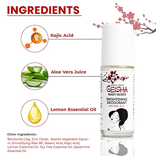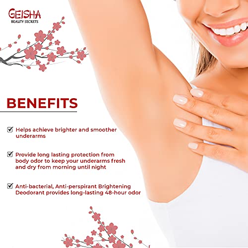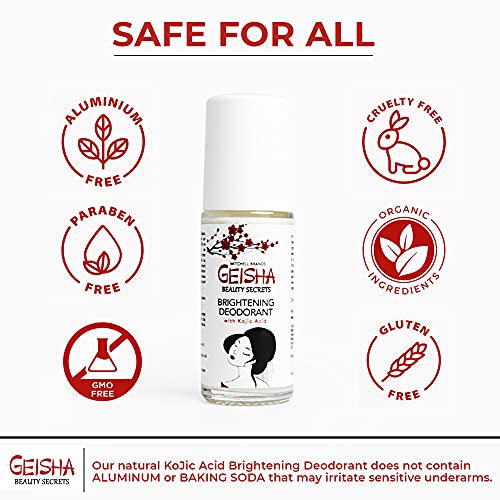 Geisha, Kojic Acid Brightening Deodorant for Women – 30ml / 1 fl oz – Underarm and Private Areas, Vegan, Gluten Free, Aluminum Free, Paraben Free